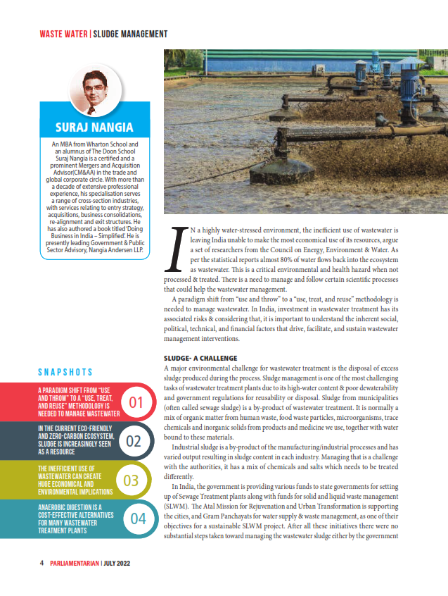 Today we need to jointly address this issue i.e. the Government bodies and the local industry, where the government has to come up with sludge management guidelines and industry has to work on innovative means to use sludge. In India we still don’t have any regulation regarding the wastewater Sludge management.